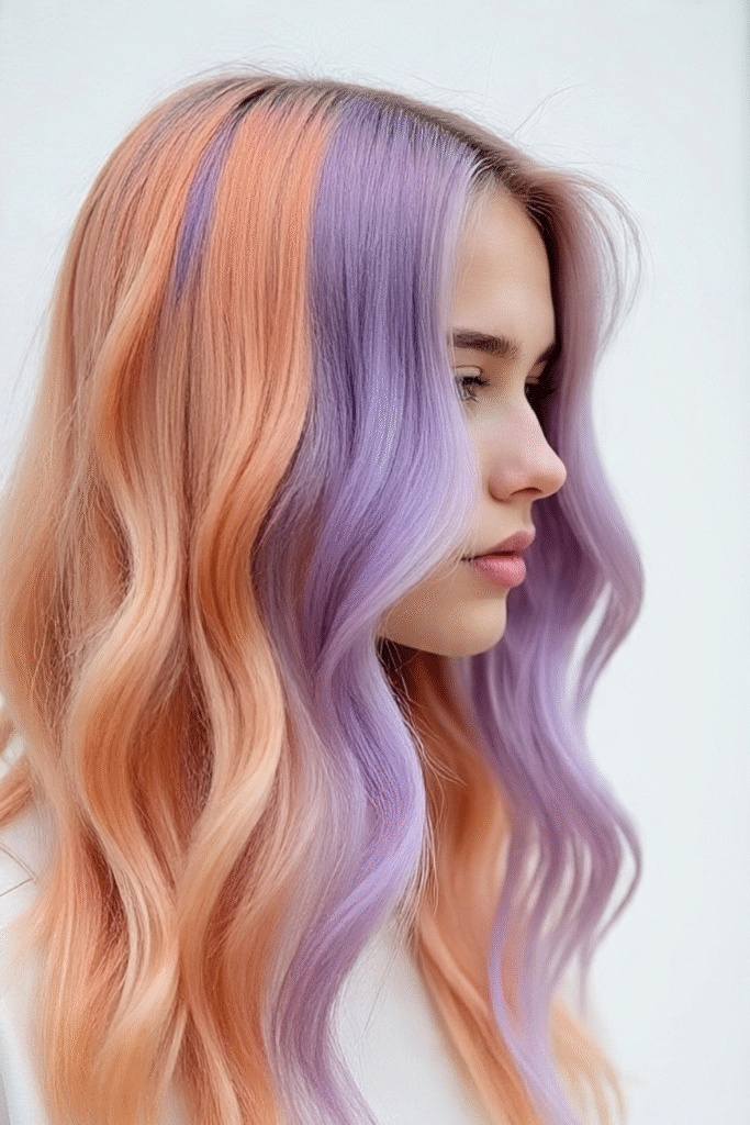 Pastellpfirsich und Lavendel verschmelzen hier zu einer außergewöhnlichen, stilvollen Farbkombination mit modernem Retro-Charme.